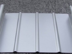 2、固定从铝镁锰屋面板中间部分,然后向两边伸展,固定屋面板的搭接边。注意应将其边搭接准确地放在前一块屋面板上,并与前一块屋面板夹紧,直到屋面板的两端固定为止。在安装下一块屋面板之前,每块屋面板必须完全被固定住。